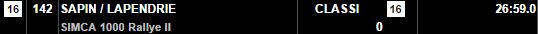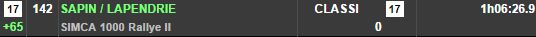 Classement de l'ES4 : Mickaël et Jérôme (portant le numéro 142 sur les portières) se sont classé en 16è position sur la première spéciale (VC) les conduisant ainsi à une 17è place au classement générale des véhicules classiques.